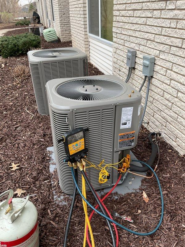 Performed seasonal air conditioning startup on recently installed unit. Connected refrigerant manifold gauges to verify system pressures and temperatures, confirmed proper refrigerant charge levels, and validated operational parameters. System is running properly with all readings within manufacturer specifications.