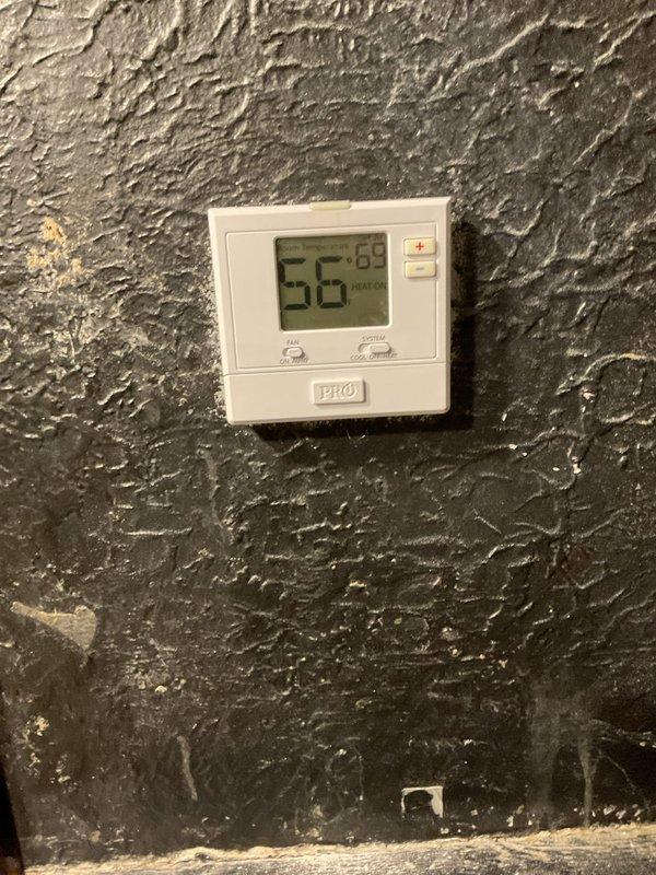 Responded to no-heat call at residential property. Diagnosed faulty thermostat as root cause of heating failure. Removed defective unit and installed new thermostat, restoring proper heat function to Lennox furnace system.