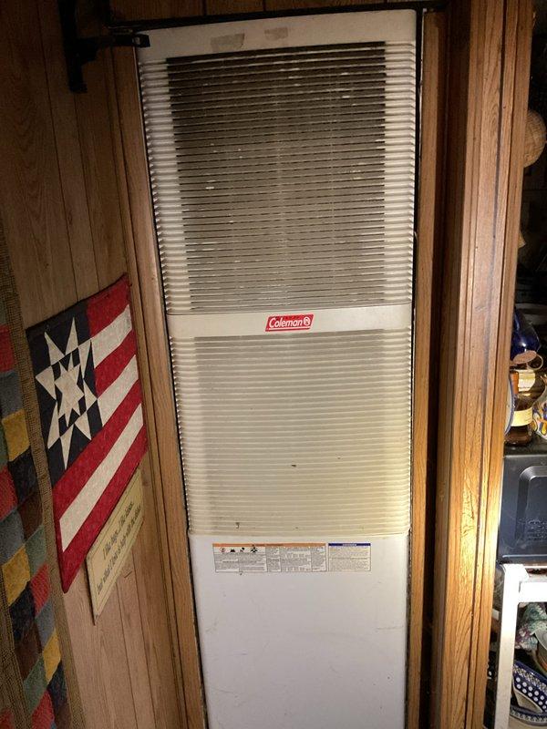Responded to no-heat emergency call for elderly customer recently discharged from hospital. Diagnosed and serviced 10-year-old Coleman wall furnace that had failed, causing interior temperature to drop to 44°F. Successfully restored heating system to proper operation.