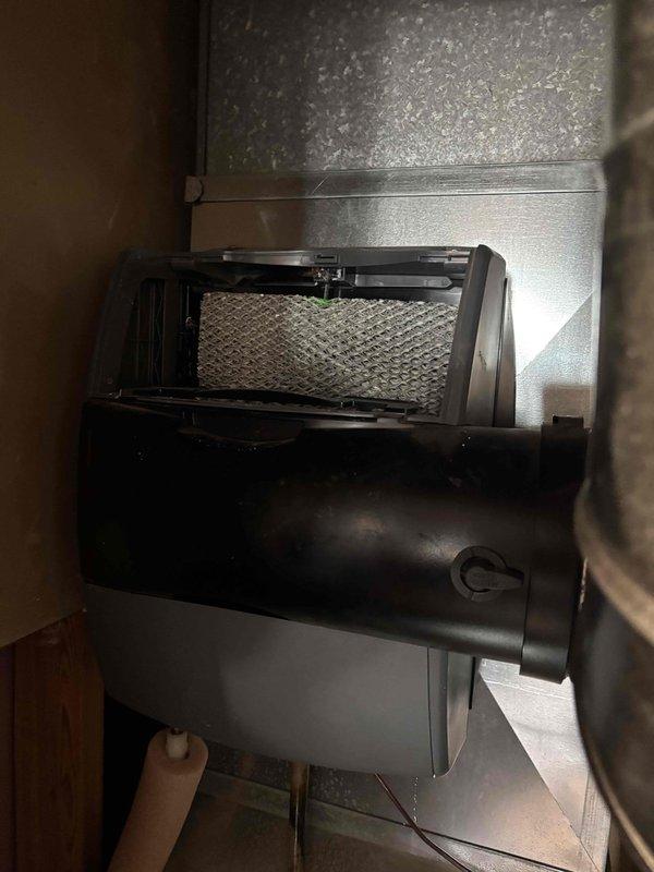 Responded to service call for customer Jean regarding a Honeywell humidifier with missing components. Located and installed new humidifier tray that was previously absent, as the original top carrier portion was missing. Completed installation of replacement tray to restore proper humidifier functionality.