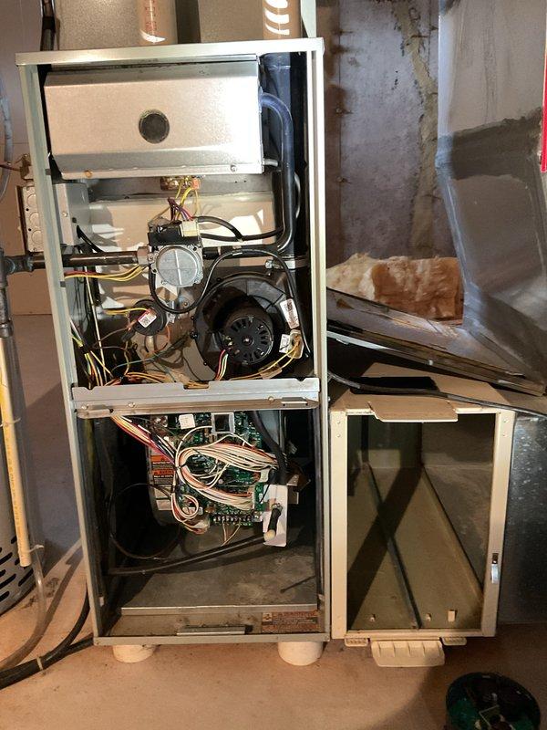 Responded to service call for insufficient heat with complaint that furnace not maintaining temperature. Upon inspection, discovered severed control wiring in basement that was interrupting proper furnace operation. Reconnected and secured all damaged wiring, then performed operational test confirming proper heating function at all registers.